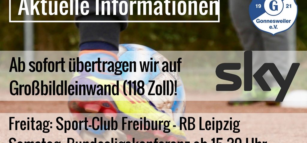 Folgende Partien übertragen wir am Wochenende auf unserer Großbildleinwand (118 Zoll):